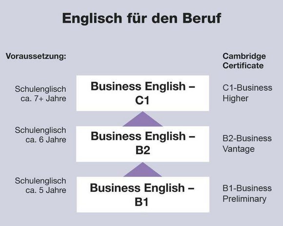 Die Cambridge Business Certificates (BEC) eignen sich für alle, die im Beruf auf internationale Kommunikation angewiesen sind. Die Prüfungsaufgaben spiegeln realistische Situationen aus dem Geschäftsleben wider. Alle Prüfungen bestehen aus mehreren Teilen und testen getrennt Lese- und Schreibfertigkeiten, Hörverständnis und Sprechen. Der Leistungsnachweis kann in drei Schwierigkeitsgraden abgelegt werden:
